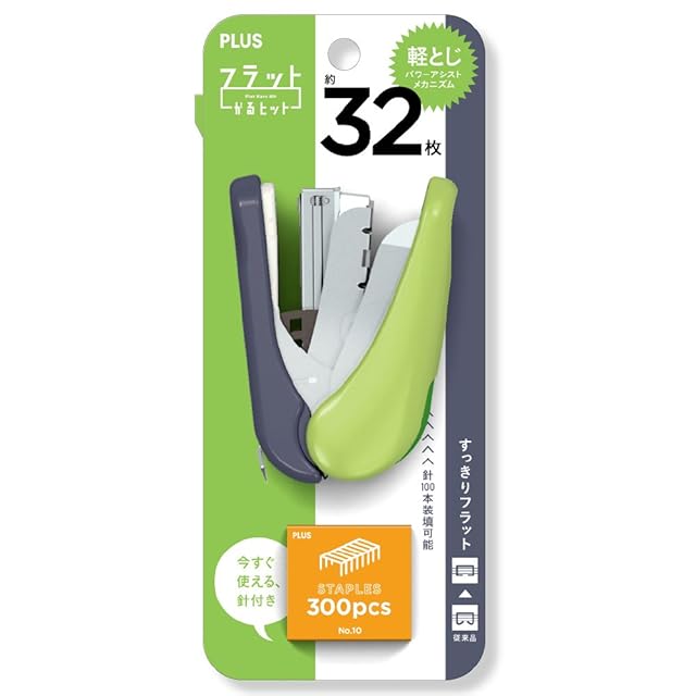 プラス ホチキス ホッチキス フラットかるヒット 32枚綴じ ST-010VNH グリーン 30-716