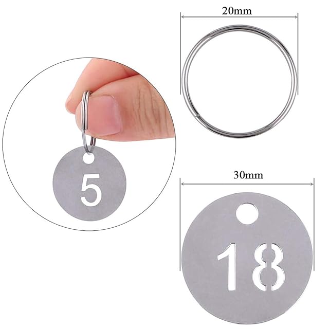 【多様な用途】家、お店、オフィス、ホテル、レンタル管理会社、宿泊施設、保管施設などで、鍵の管理から、テーブル番号まで、多様な使い方ができます。シンプルで分かりやすいフォントを使用して、簡単に番号を見分けられます。 また、ステンレス特有の質感で、手ごたえある一品です。