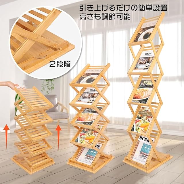Jumei カタログスタンド マガジンラック 折りたたみ式 5段 竹製 片面 パンフレットスタンド カタログラック おしゃれ 雑誌ラック 組み立て不要 イベントや催事に (A3サイズ)