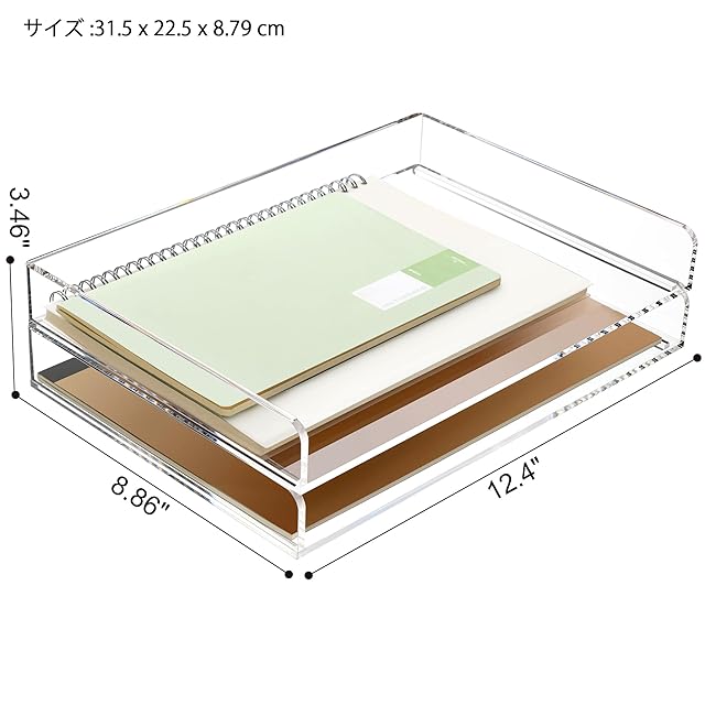 書類整理 レターケース 書類トレー アクリル製 A4サイズ対応 オフィス デスク収納 ホームオフィス 文房具整理 重ねて省スペース 横型 幅22.5×奥行31.5×高さ4cm/個 2個セット