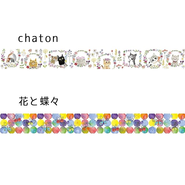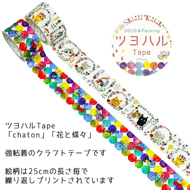 シール堂 クラフトテープ ツヨハルTape 猫・花と蝶々 Shinzi Katoh 27mm幅 5m巻 2巻セット ks-cft-40002