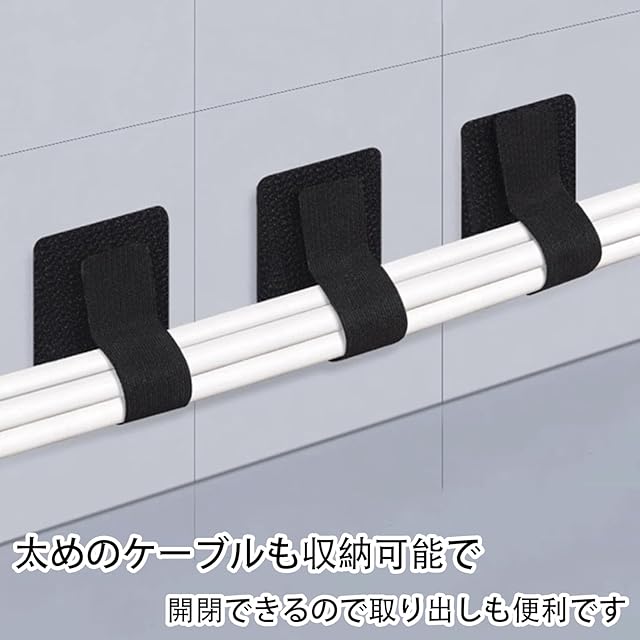 商品名:40本セット 再利用可能粘着式ケーブルタイ、デスク下や壁の配線隠しに最適、調節可能な ケーブルクリップ & ケーブルホルダー、コード整理用 配線止め 便利アイテム(黒30+白10)