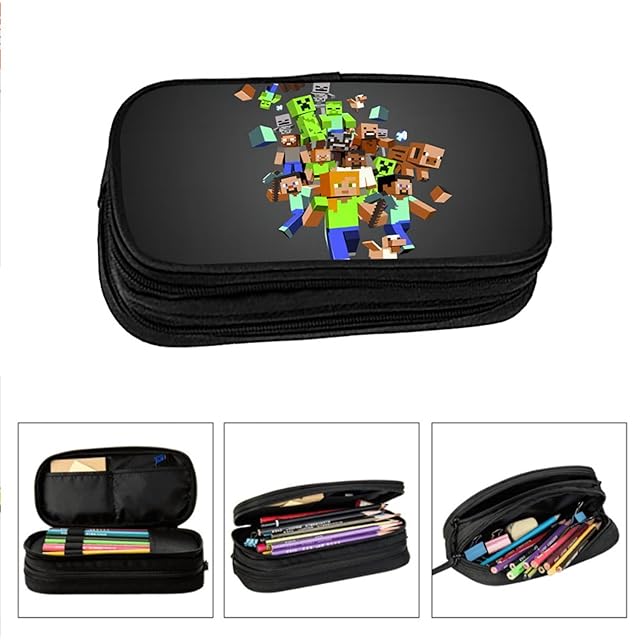 マイクラ 筆箱 ペンケース 大容量 小学生 多機能 収納性 文具 鉛筆 消しゴム シンプル 入学祝 誕生日プレゼント 男の子 女の子 (C)