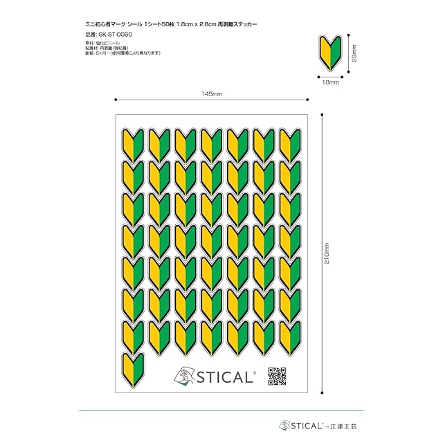 STICAL ミニ初心者マーク シール 1シート50枚 1.8cm x 2.8cm 再剥離ステッカー