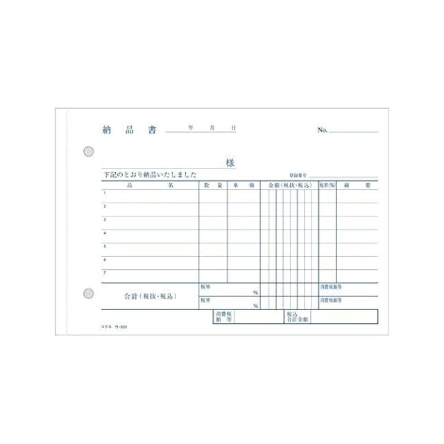 商品名:(まとめ買い)コクヨ NC複写簿 3枚納品書 請求書付 B6横 2穴80mmピッチ 7行 50組 ウ-333 軽減税率制度対応 【×5】