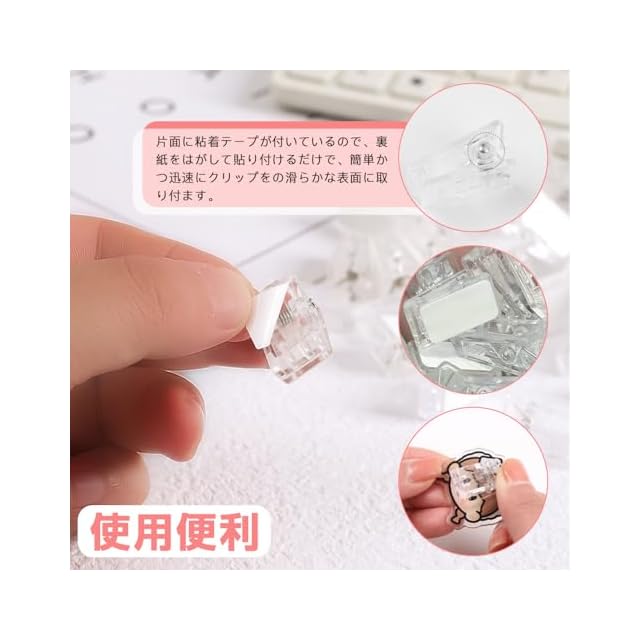 【使用便利】片面に粘着テープが付いているので、裏紙をはがして貼り付けるだけで、簡単かつ迅速にクリップをの滑らかな表面に取り付ます。