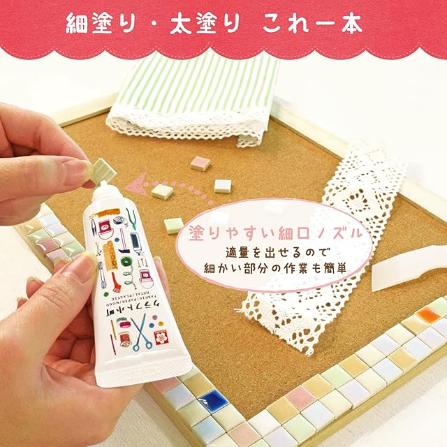 【特長1】手芸・DIY・小物作りに。布、木、紙、金属、ガラスなど多様な素材を強力接着。