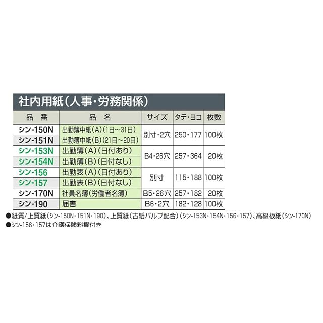 コクヨ(KOKUYO) 社内用紙 B4 出勤簿 26穴 A 20枚 シン-153N