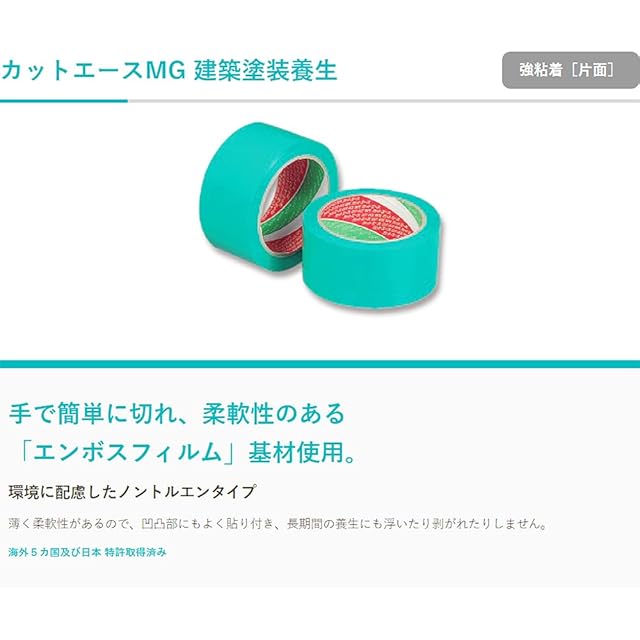 建築養生・塗装養生・仮止めに強粘着でも糊残りしにくい。