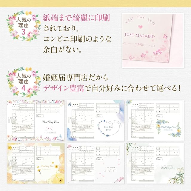 ✅【役所提出可能】役所指定のA3サイズで、日本全国の役所に提出可能なオリジナルデザインの婚姻届です。専任デザイナーによる一からのオリジナル設計。