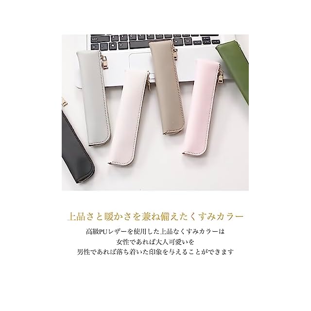 大人可愛い ペンケース スリム くすみカラー シンプル コンパクト (アイボリー)