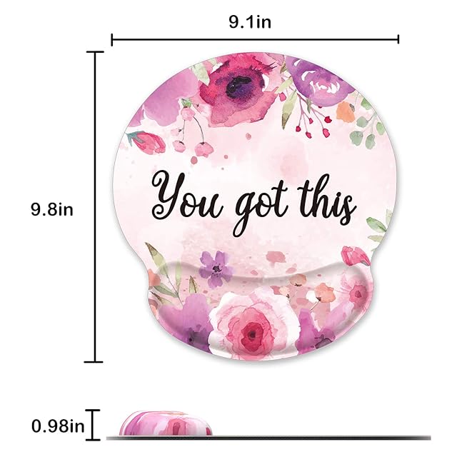 リストレストサポート付きのマウスパッド。鮮やかな色彩、かわいいパターン、インスピレーションを与える引用句が特徴で、オフィスの装飾、ゲーム、仕事などに最適です。