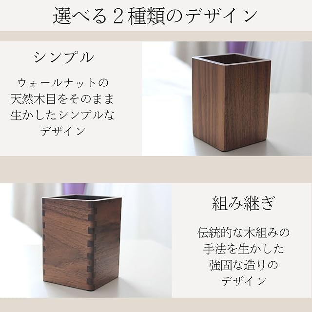 【サイズ】縦8㎝×横8㎝×高さ11㎝【材質】天然ウォールナット【天然木の特徴】天然無垢材を使用しているため、一つ一つ色みや木目が異なっております。天然の風合いをぜひお楽しみください。