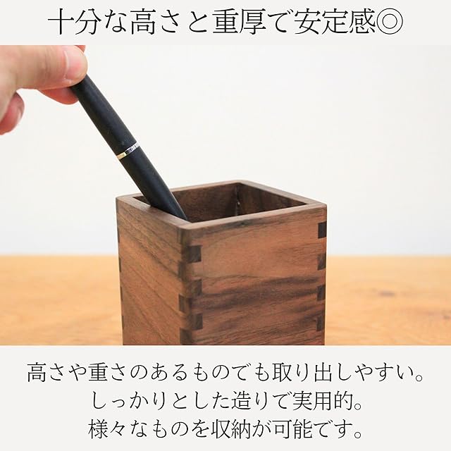 木製 ペン立て【Maple Style】 ペンスタンド ウォールナット 無垢 木目 ナチュラルウッド 天然木 日本ブランド 卓上 鉛筆立て デスク収納 収納ボックス カトラリースタンド シンプルデザイン メイクブラシ収納