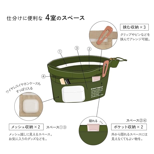 [Kleid] ペンケース kleid メッシュポーチ メッシュキャリーポーチ ミニマム オリーブ