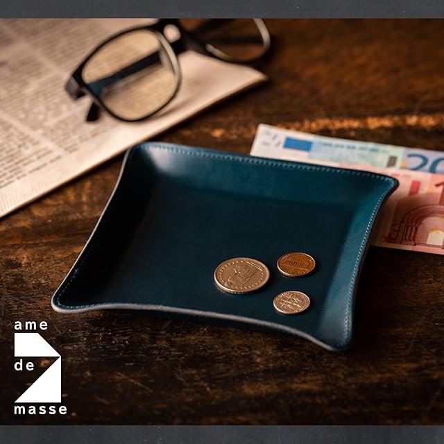 [アム デ マス] 小物トレー 栃木レザー 本革 日本製 卓上 小物入れ アクセサリー ハンドメイド シンプル 軽量 TY-006 (Oブルー)