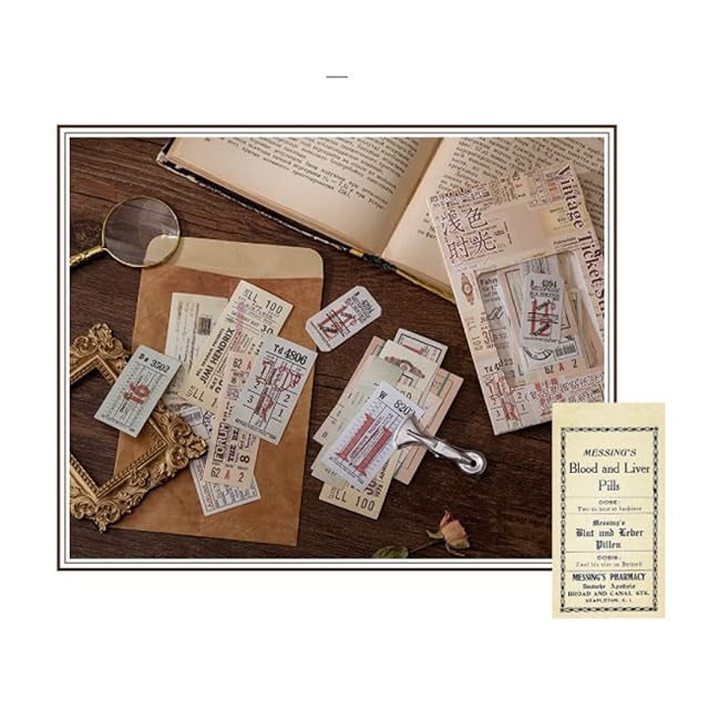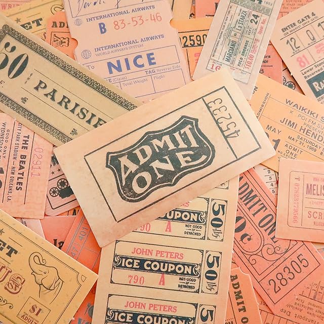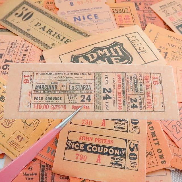 urica スクラップシール ヴィンテージ チケット 切符 レシート 40mm〜80mm 40枚 (オレンジ系)