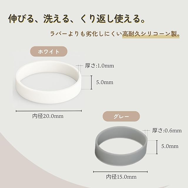 【商品仕様】 グレー:直径15mm、幅5mm、厚み0.6mm;30個 ホワイト:直径20mm、幅5mm、厚み1mm;30個