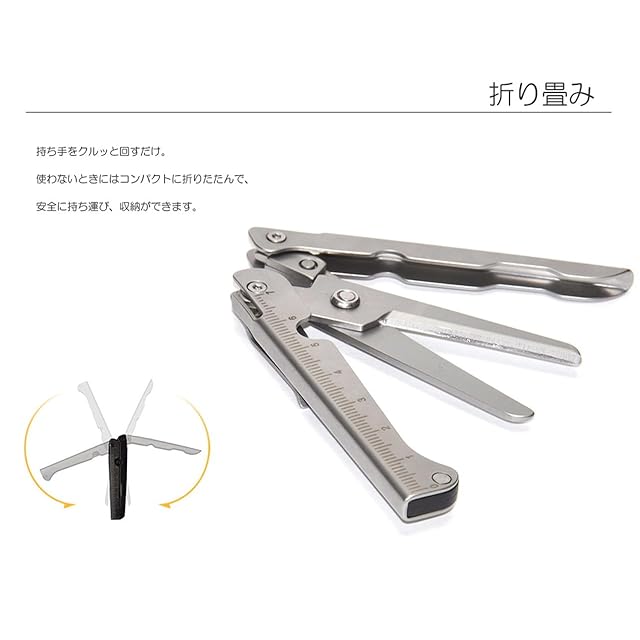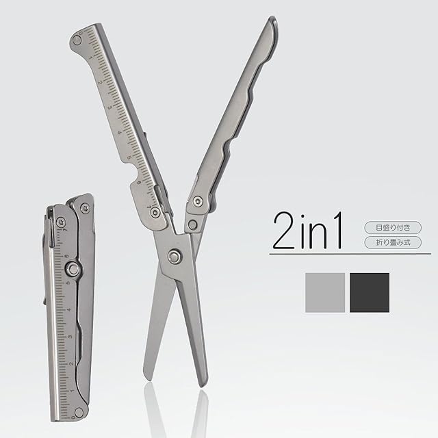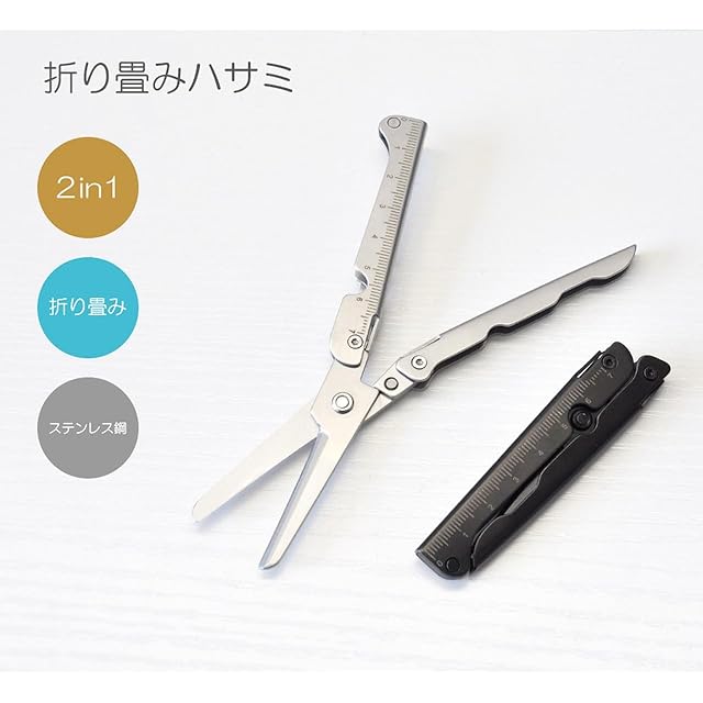 Goods Land 【 2カラー 】 折りたたみ はさみ 携帯 ハサミ 目盛り 定規 物差し 文房具 学生 オフィス GD-ORHASAMI-SV
