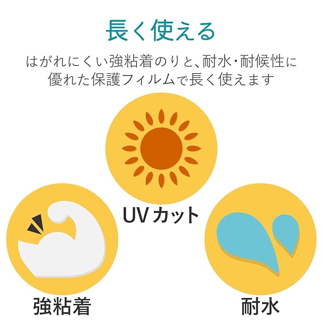 耐水加工を施したフィルムにUVカットフィルムを貼り重ねることで、耐久性を向上しています。