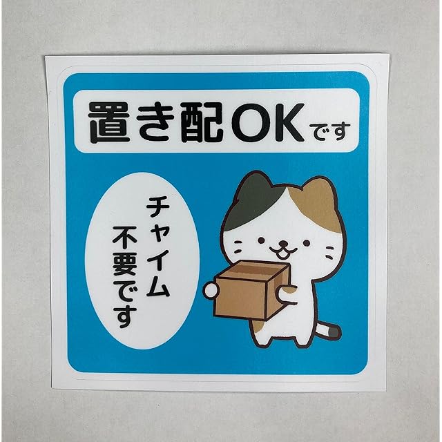 置き配OK ステッカー 猫 シール 宅配ボックス 宅配BOX ネコ N1 動物 犬 玄関前 チャイム不要 プレート 札 ドア 郵便 配達物 不在 かわいい おしゃれ 荷物 宅急便 留守 屋外 玄関 反射 耐候性 耐水 (ステッカー, スカイブルー)