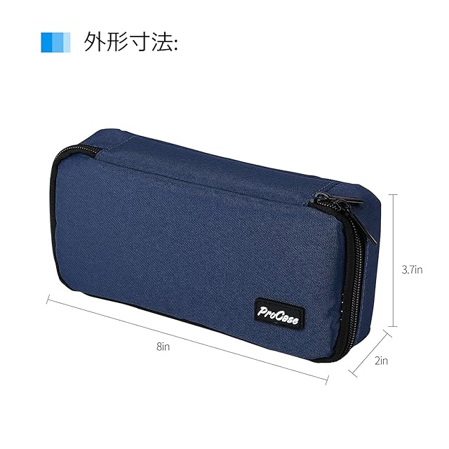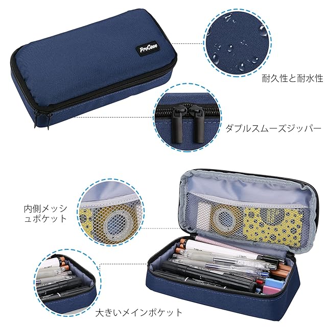 ProCase ペンケース 大容量 筆箱 シンプル ラージサイズ 学生用 社会人用 機能的 男の子 女の子 文房具 ダブルジッパー –ネービー