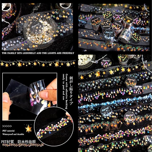 シール コラージュ 素材 スキングテープ ロール 詰め合わせ Fretime きらきら テープ型 ヴィンテージ PET かわいい 女の子 レトロ おしゃれ 防水 手帳 シール コラージュ 素材 韓国 8個 セット 大容量 沢山 灯り ライト (パーティー)