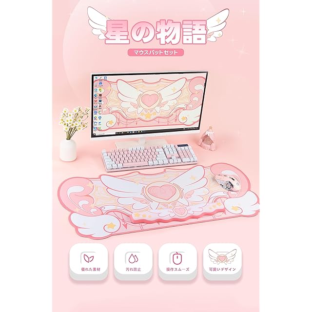 GeekShare 大型マウスパット 防水材質 清潔しやすい オフィス用 スイッチデザイン マウスパッド かわいいデザイン リストレスト プレゼント 星の物語セット ピンクセット