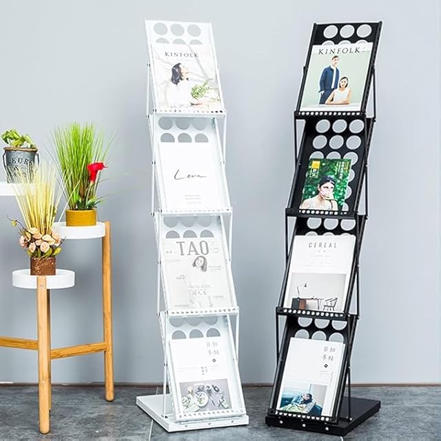 Jumei カタログスタンド マガジンラック 折りたたみ式 4段 片面 パンフレットスタンド カタログラック おしゃれ 雑誌ラック 組み立て不要 イベントや催事に (ブラック)