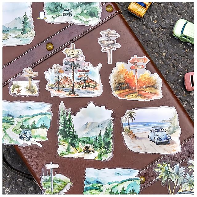 ❤ロードトリップをモチーフのしたシールセットです。海辺、山、森、砂漠など、自動車を運転して旅行する途中の風景がとても素敵ですね。パターンが豊富ですし、大容量の180枚入りです。便利な剥がし貼りタイプで、コラージュにぴったりです。