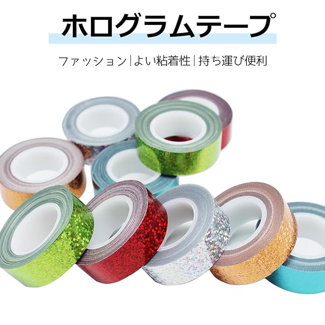 【優れた貼り付け性能と持ち運び便利】この色鮮やかなホログラムテープの裏面は粘りがあり、大量の残留物や表面を汚さずに除去できます。カードやスクラップブック、ギフト包装にぴったりです。カラーテープは体積が小さいので、簡単にカバン、小袋、ペン袋などに入れて、学校、オフィス、旅行、出張に持ち歩くのに便利です。いつでもどこでも使えます。