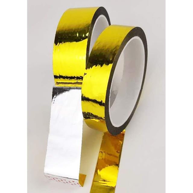 「キラキラ」光る光沢ある金色の粘着テープ50M、結婚式やイベント、パーティー、クリスマスなどのインテリアや装飾に。ゴールドの裏面が粘着性になっています。