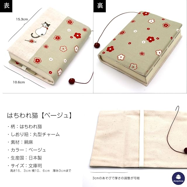 sheepsleep ブックカバー 文庫判 刺繍 日本製 布 文庫本カバー「はちわれ猫BE」