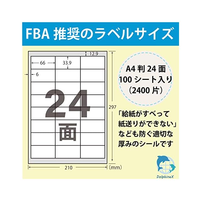 FBAラベルシール 24面 きれいにはがせる 出品者向け 100シート入り 宛名 手書きも可能 様々な用途に対応【DolphineX製】