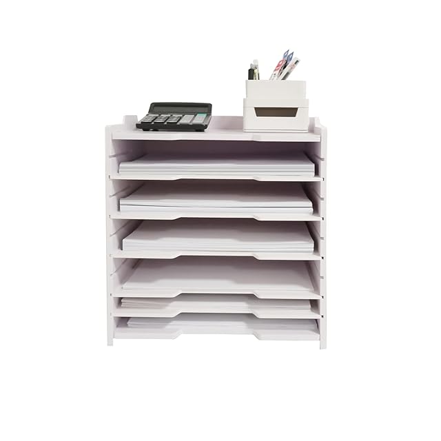 YFS A4 卓上ラック 3段/4段/5段/6段/7段/8段/10段 高さ調節可能 A4/B4対応 書類入れ a4/b4レターケース 書類ケース 新聞/雑誌/ファイル/フォルダー収納 木製 棚板高さ調節可能 深型/浅型 縦型/横型 小物収納 整理整頓 積み重ね 頑丈 おしゃれ 組立簡単 机上用品 書類ケース整理 収納 オフィス 寝室 リビング収納 (A4&横型&6段)