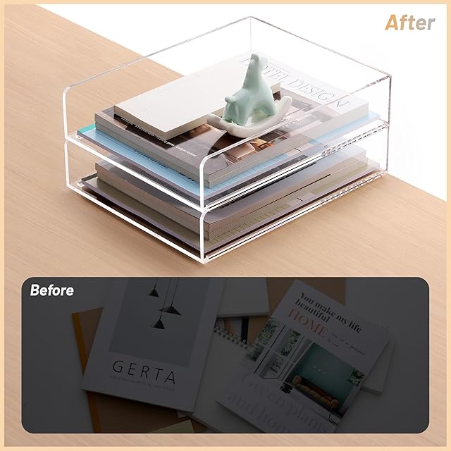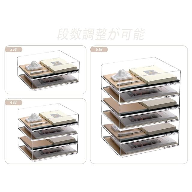 素材・材質:高いアクリル素材を使用して作成された卓上ファイルボックスです。構造が安定しています。壊れにくく、耐久性があります。防水性に優れ、錆びません。商品の寸法:31.5L x 22.5W x 13.5H cm