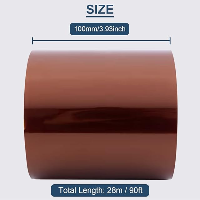 DAOKAI 100mm x 33m(108ft) 高温テープ 高温テープ ポリイミド耐熱テープ サーマルテープ カプトンテープ マスキング/はんだ/3Dプリンター/バッテリー用