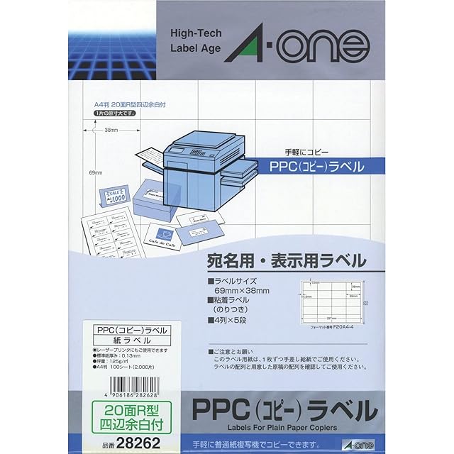 エーワン コピーラベル A4 20面R型 100シート 28262