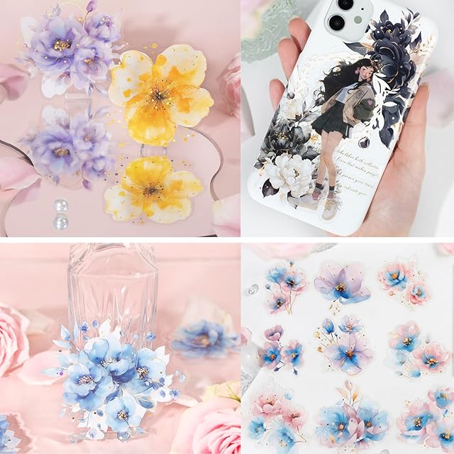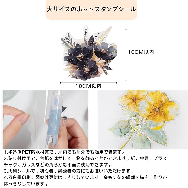 【ユニークなデザインの花柄】コラージュ シールは独特な部分金細工を採用して、花の層がはっきりしていて、細部が精巧です。花の色に独特の風合いがあり、天真爛漫なピンク、幻想的な紫、華やかなブラックゴールド、柔らかいピンクブルー、さわやかなブルー、温かみのあるイエローにうっとりさせられます。