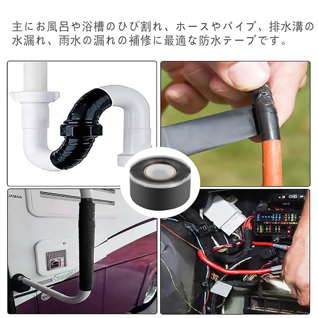 [多機能性] 防水テープは電線の絶縁、固定、および束縛に主に使用され、水管、配管、PVCパイプのシールおよび修理に最適な材料です。電線の固定、家電製品、家具、配管、車両の修理、家庭用工具のグリップおよび衝撃吸収処理に広く使用されます。