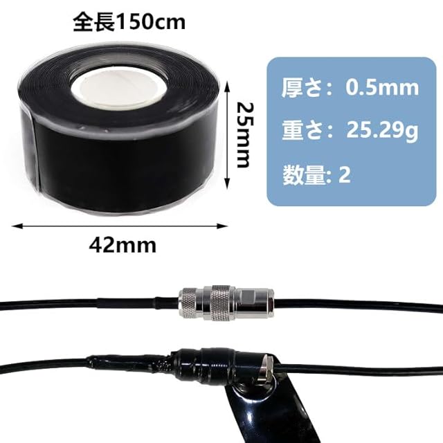 商品名:シリコンテープ 【2個セット】 自己融着テープ 黒 防水用テープ 電気絶縁テープ 配管補修テープ 絶縁保護 耐寒 耐熱 高耐久 -60℃~260℃ 浴槽 水道管 ホース 配管リーク補修 PVCパイプ修理 緊急パイプライン修理 家庭 ガーデン 台所 壁 工業 多用途 サイズ約25mm*150cm