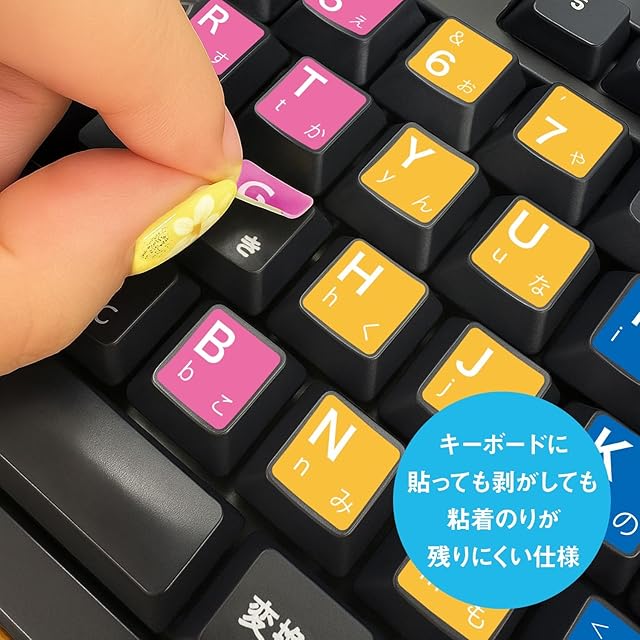 【貼りやすく剥がしやすい】高品質素材を採用し、キーボードに貼っても剥がしても粘着のりが残りにくい仕様。使い終わった後もキーボードを傷めず清潔に保てます。