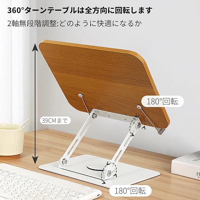 【高さ・角度調整可能】この読書スタンドは0~180度の自由調節をサポートし、底部は360°回転することができ、さまざまな使用シーンのニーズに対応しています。