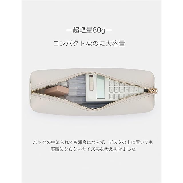 ロッテラッカ ペンケース PUレザー レディース シンプル 大人かわいい 開閉スムーズ 撥水 (アイボリー)