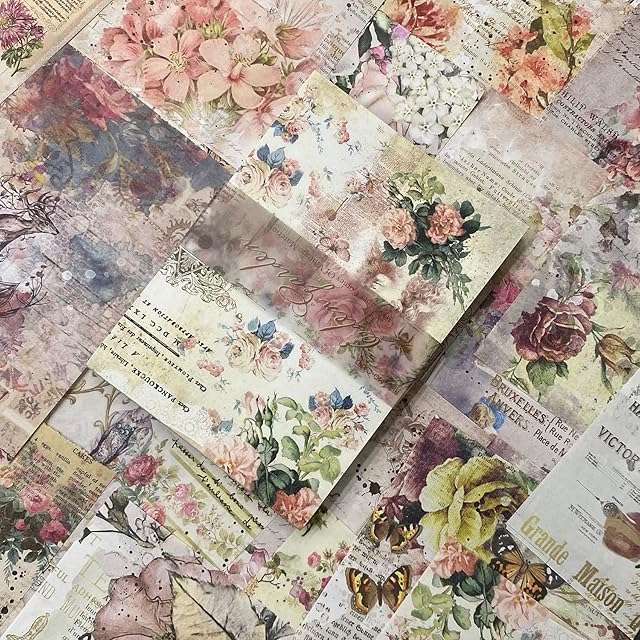 コラージュ 素材 デザインペーパー 詰め合わせ ペーパー ヴィンテージ 背景紙 紙もの 素材紙 シール ノート レトロ ブック 女の子 かわいい 魔法 100枚 大容量 紙素材 コラージュ素材 アンティーク おしゃれ 蝶々 花(ガーデン)