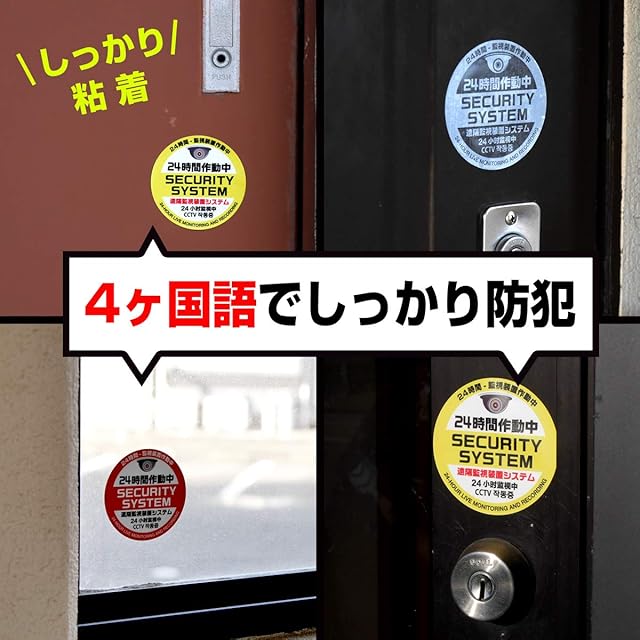 4ヶ国語対応 防犯 ステッカー 24時間作動中 空き巣 万引き 防止 屋外使用 耐候&防水 ステッカー シール 7cm (1枚, イエロー(黄))