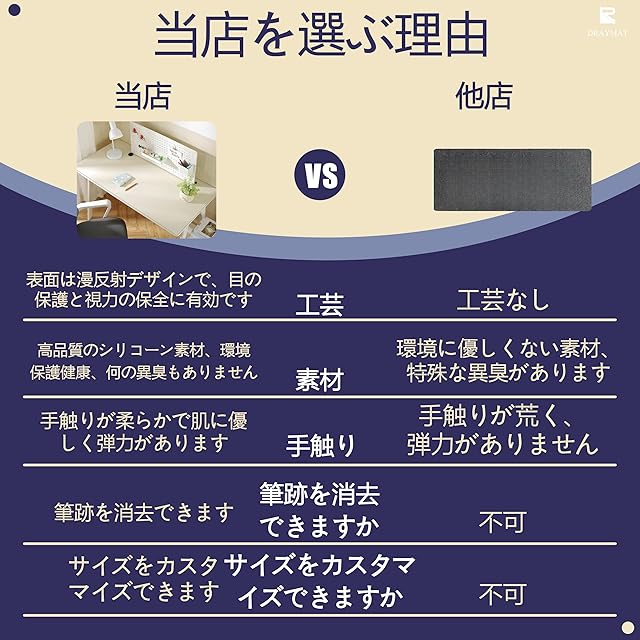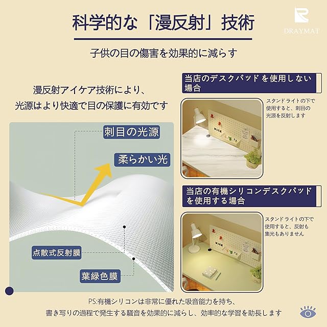 DRAYMAT シリコーンレザー製 学習机 テーブルマット 下敷き 勉強机 デスクマット ノイズ低減 テーブルパッド お手入れ簡単 视覚保護 デスクパッド 柔らかい 肌に優しい 滑り止め 防水 防油 耐熱 汚れ防止 多色 厚さ1.5mm カスタマイズ可能 形状 寸法 オーダーメイド