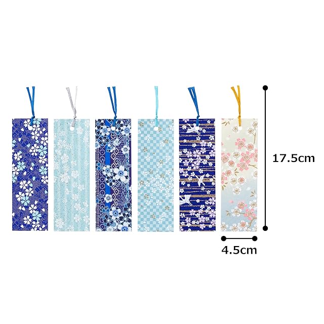 【.co.jp 限定】和紙かわ澄 友禅和紙 型染め しおり ブックマーカー 特撰 桜柄 青系 6枚入