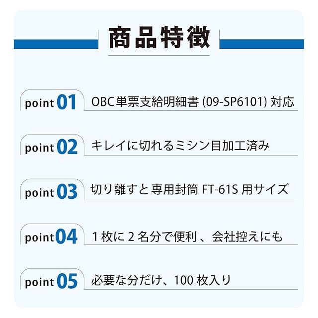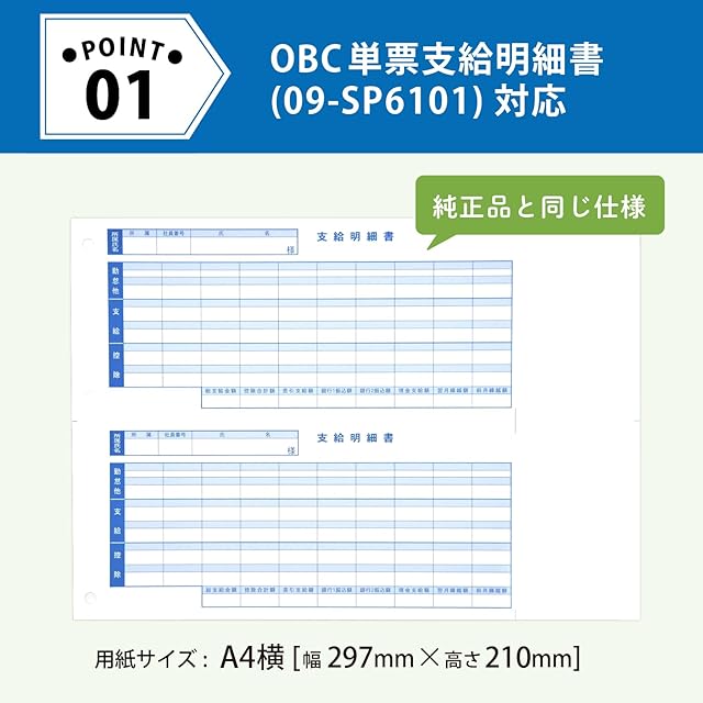 OBC 単票支給明細書 【100枚】 09-SP6101対応 FT-61S用サイズ 支給明細書