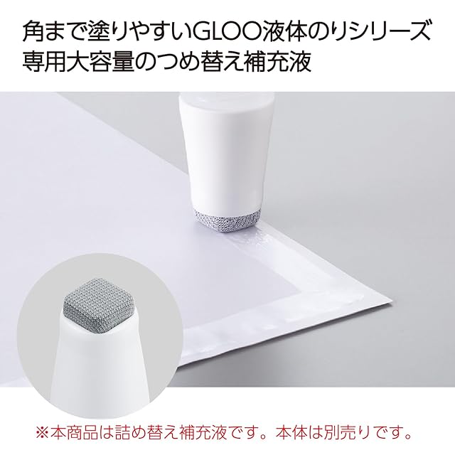 四角いスポンジヘッドでカドまで塗りやすい液体のりGLOO(つめ替え補充液)